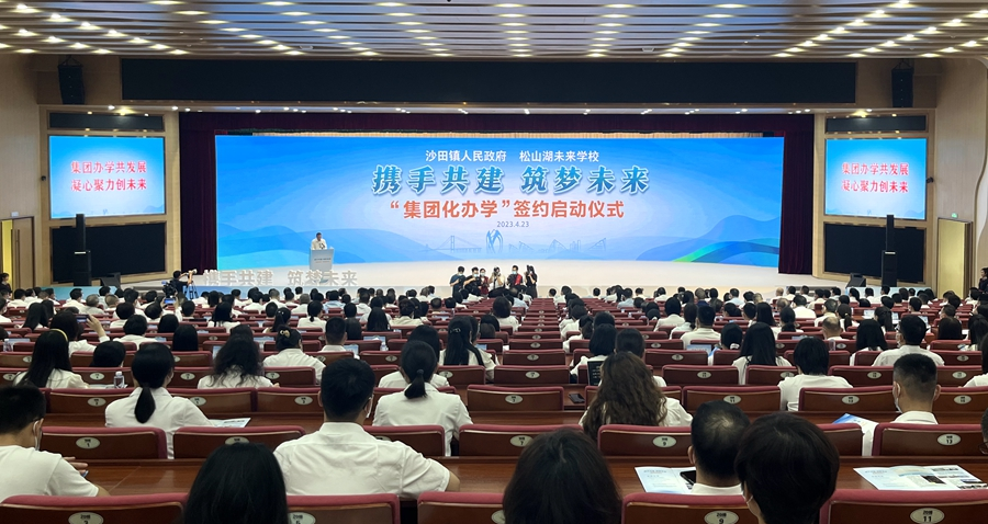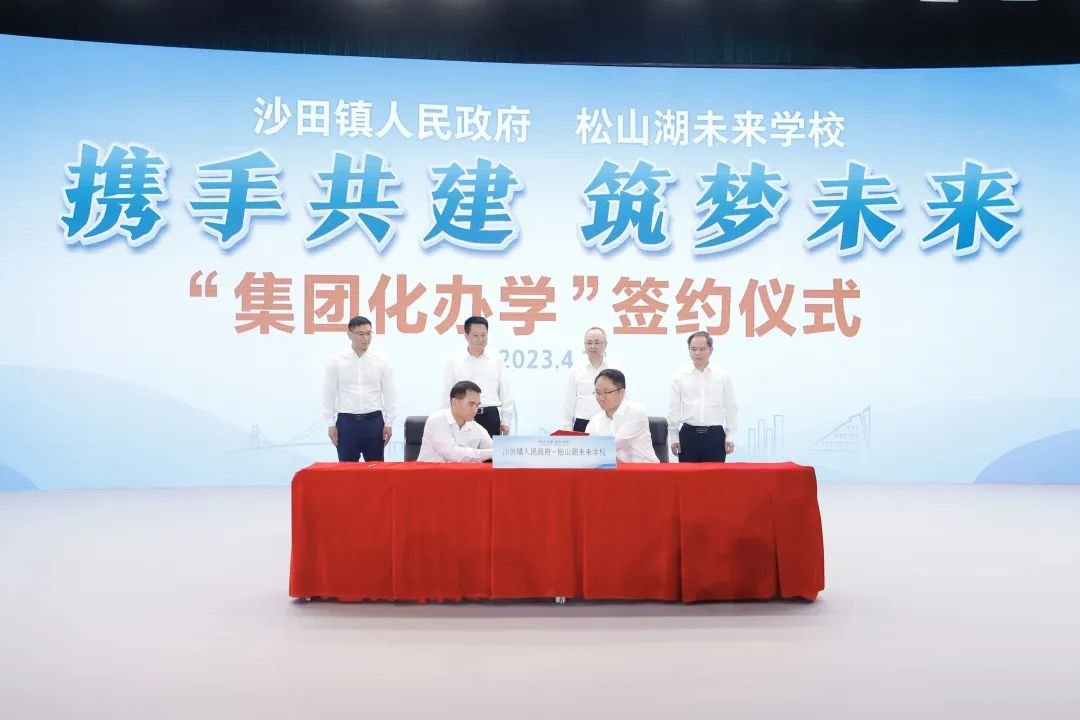 4月23日,沙田镇人民政府与松山湖未来学校在沙田镇市民大讲堂举行集团化办学签约启动仪式。至此,正式启动东莞松山湖未来学校教育集团沙田中学的筹建工作,拉开东莞松山湖未来学校对沙田实验中学进行托管的序幕,标志着沙田教育发展进入新时代,迈上新征程。