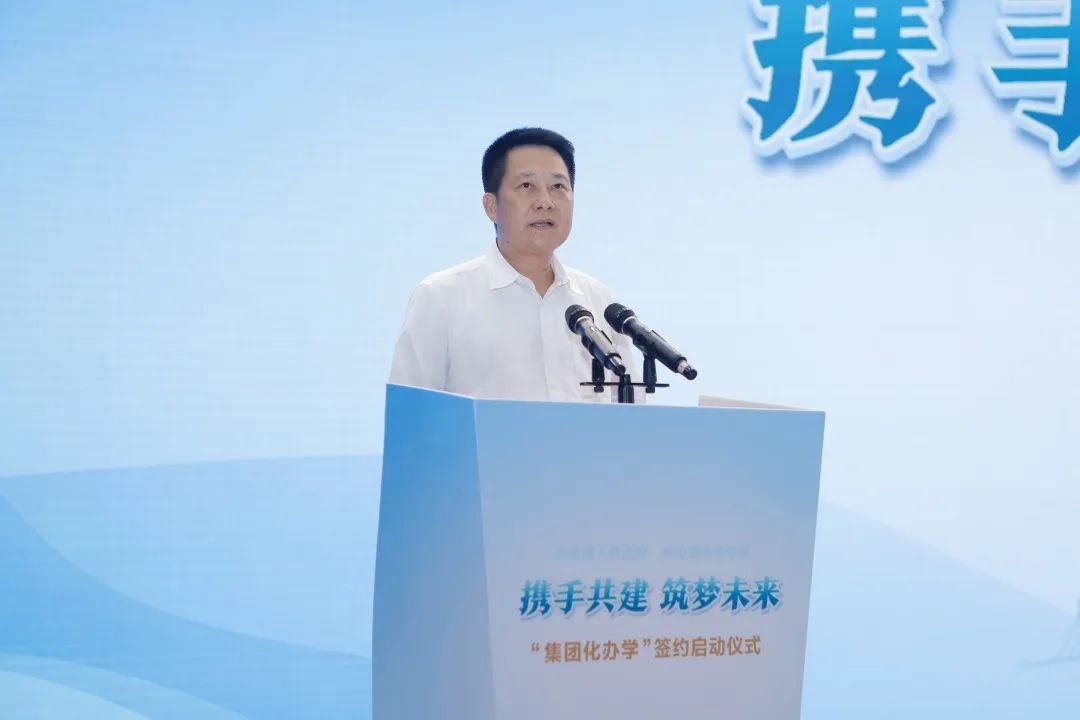贾贵斌指出,加快推动沙田“魅力湾区,创新港城”建设,比以往任何时候都更加迫切需要高素质人才支撑保障,更加迫切需要提升教学水平、教育质量。集团化办学有利于发展沙田教育事业,增强文化软实力,同时也有利于弘扬东莞松山湖未来学校办学理念,擦亮教育品牌。沙田镇党委政府高度重视人民群众对优质教育的呼声,强力推进教育体制改革,积极探索优质教育资源集团化办学模式,推进集团化办学的扩面提质,引进东莞松山湖未来学校的先进办学理念和优质管理团队,全面托管全镇公办中学,对托管学校办学给予倾向性政策支持以及提供资金保障,助力提升教师队伍素质、培育学校品牌特色。2023年,沙田镇党委政府将继续以科学发展观统揽全局,紧紧围绕学习贯彻党的二十大精神这条主线,服从服务中心大局,锚定高质量发展首要任务,坚定不移地实施科教兴镇、人才强镇,为新校舍建设提供全方位的服务保障,确保项目顺利推进,借助未来学校教育的品牌影响力、辐射带动力,打造沙田教育新高地。