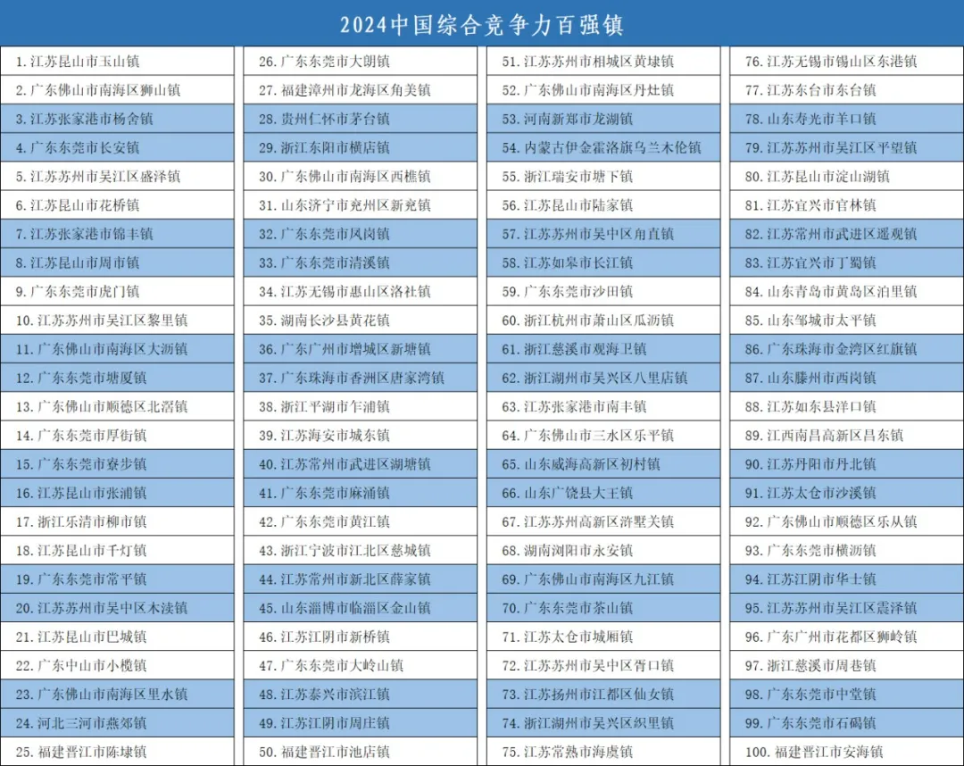 近日,由中国城市和小城镇改革发展中心指导,竞争力智库、北京中新城市规划设计研究院主办的“2024乡镇高质量发展交流会”在湖南召开,会上发布了《中国乡镇综合竞争力报告2024》(下称“报告”)。报告揭晓了2024年中国综合竞争力百强镇名单,广东有31个镇上榜,其中东莞占17个,数量居广东首位,体现出东莞镇域经济强大的韧性与活力。