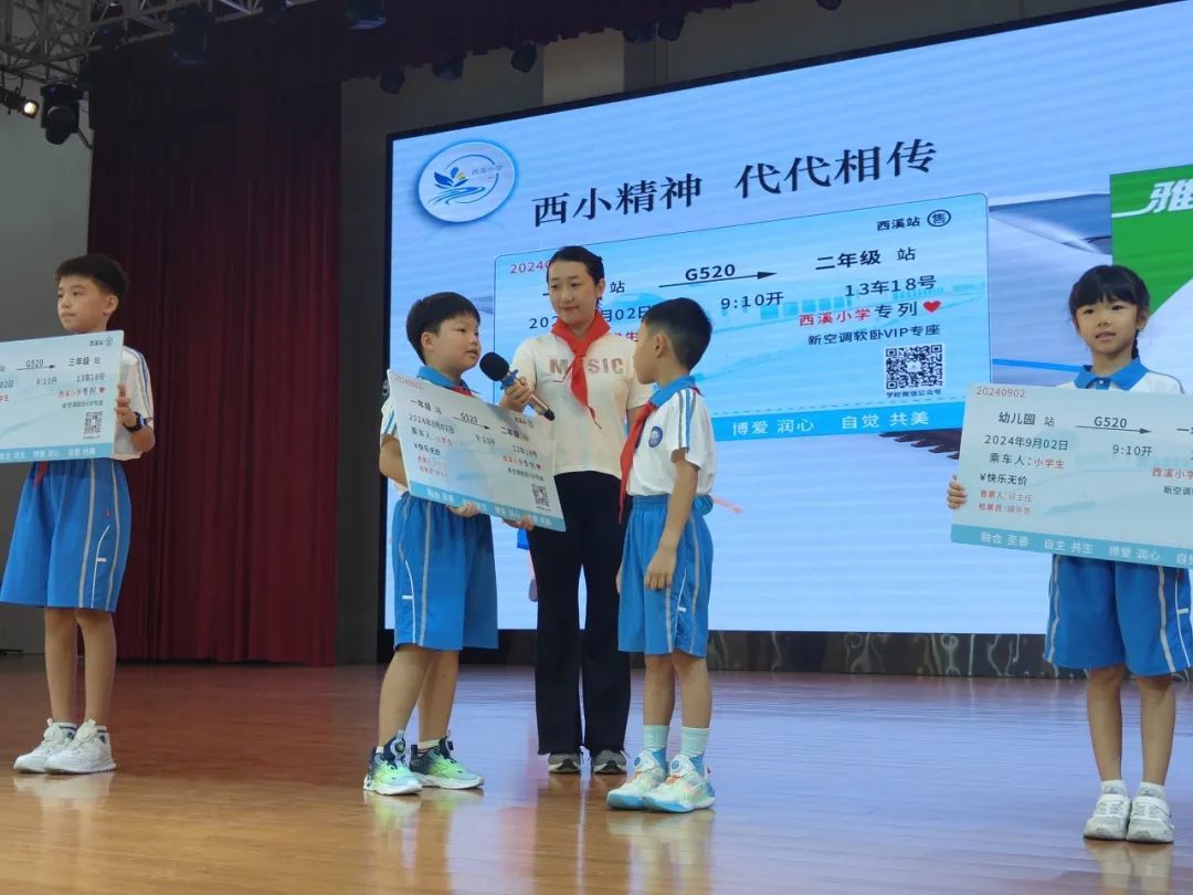 随后,“西小快乐专列车票传递仪式”精彩启动,各年级学生代表将美好祝福与期许传递给下一届的弟弟妹妹们,象征着西小精神如火炬般代代相传。