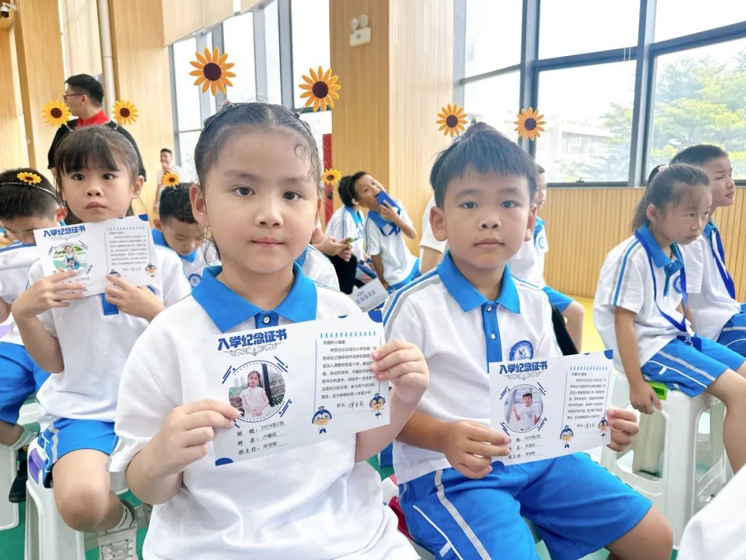 仪式上,学校为可爱的一年级“蒙娃”颁发入学纪念证书,这一份份证书承载着满满的祝福与期望。