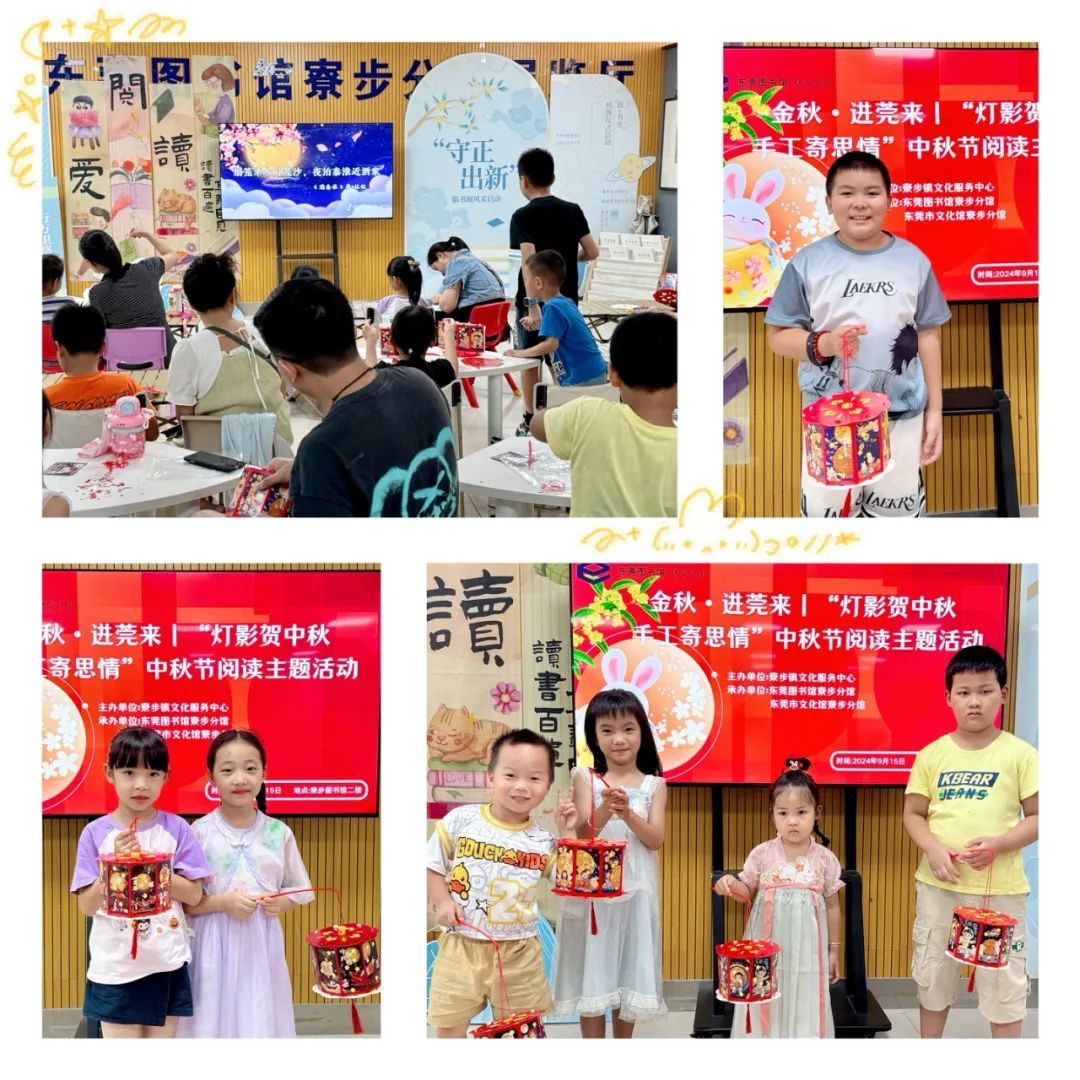 9月15日下午,寮步图书馆二楼少儿绘本馆内举办了一场别开生面的中秋节阅读主题活动——“灯影贺中秋 手工寄思情”。此次活动旨在让孩子们在了解中秋节的起源和月饼的由来中,感受中国传统文化的魅力,增强对民族文化的认同感和自豪感,从而更好地传承和弘扬中华优秀传统文化,同时通过手工制作灯笼,体验动手的乐趣,传递深深的思乡之情。