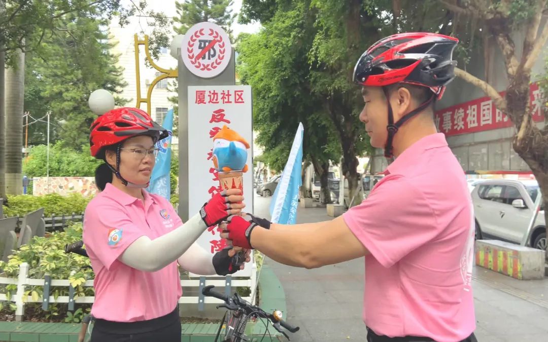 “我们从上角社区一路骑行过来,大概耗时近两个小时,我们希望通过这些小举动,传递平安文化建设理念,让更多的人参与进来。”志愿者段旭骅说。