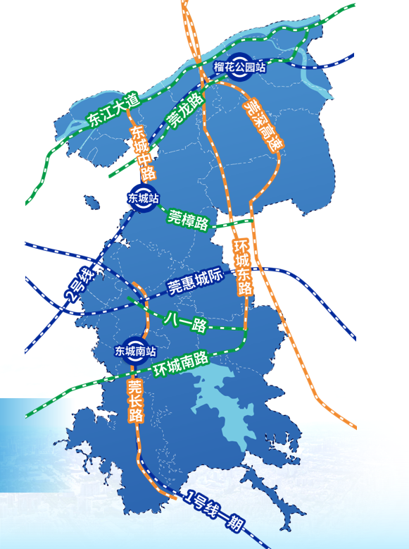 一个小时左右可到达香港、深圳、广州三大机场,多条高速、快速、国道、省道穿境而过,穗莞惠城轨,地铁1号线、2号线均在这里设有市内最多的站点,构建成了纵横交错、四通八达的交通体系。