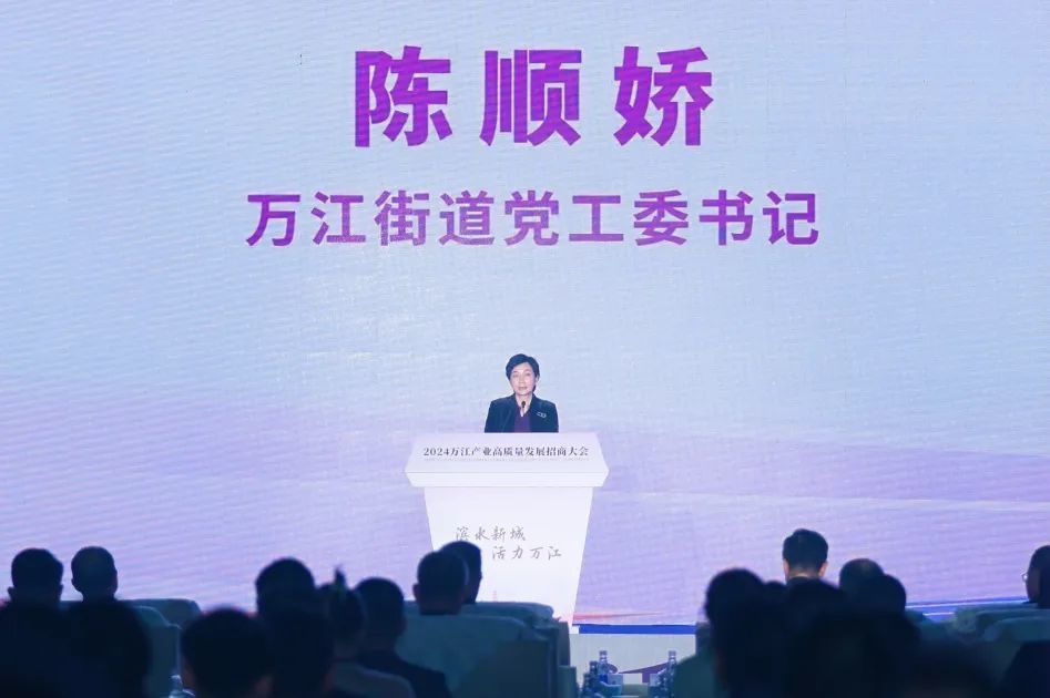 大会上,陈顺娇通过“活力”“机遇”“品质”三个关键词,向优秀企业机构全面展示了万江发展潜力和机遇。她表示,万江正全面推动产业向新、环境向新、动能向新,大力激发城市生长“因子”,不断释放发展新活力;万江正聚焦新质生产力培育壮大和城市能级全面提升,为企业投资发展提供全方位保障;万江正依托着“城水相依、蓝绿相融”的城市特色,全力打造宜居宜业宜游的发展生态。