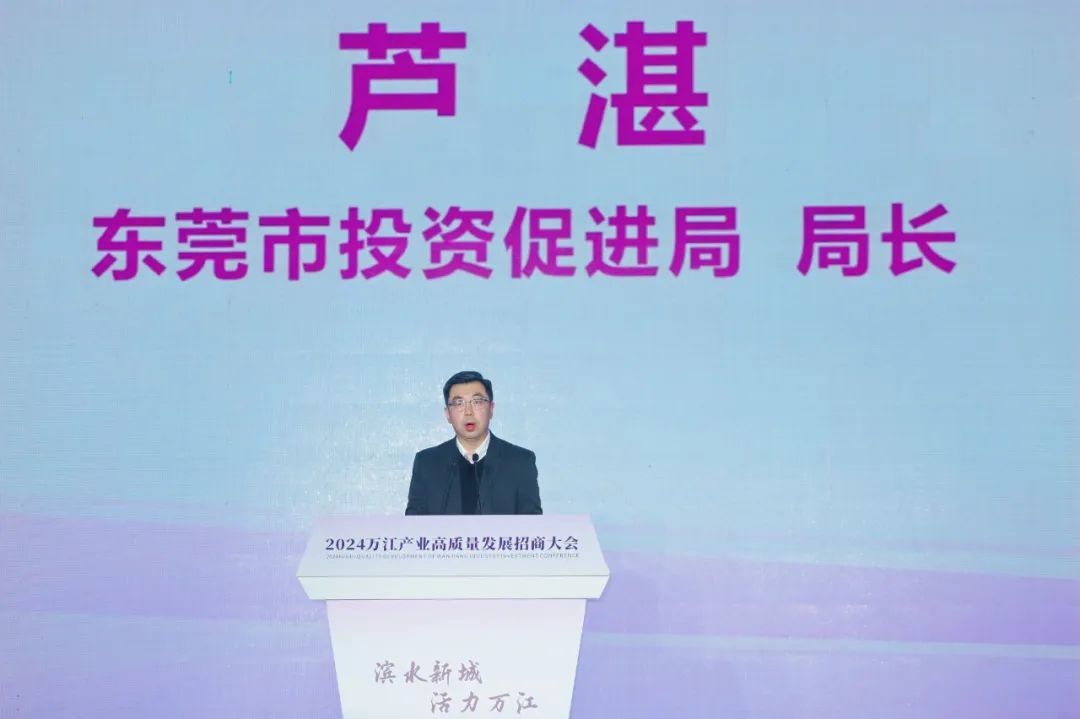 芦湛致辞表示,万江街道作为东莞中心城区的重要组成部分,地理位置优越、产业基础扎实,产业集群化发展态势明显,特别是在装备制造领域,已集聚了数控装备产业相关企业超1900家。今年9月,万江数控装备产业集群成功入选国家级中小企业特色产业集群,是东莞唯一上榜的镇街。相信依托完备的产业链条、有力的政策举措和丰富的应用场景,万江的智能装备、新能源等产业将会迎来更大的发展,为全市培育和发展新质生产力提供坚实支撑。展望未来,东莞市投资促进局将全力支持服务万江街道聚焦智能装备、新能源等特色产业,积极招引先进制造业项目,协调导入一批优质企业资源,携手万江提供最优政策条件,全力做好项目落地保障,助力万江街道招商引资工作取得新的更大成效。