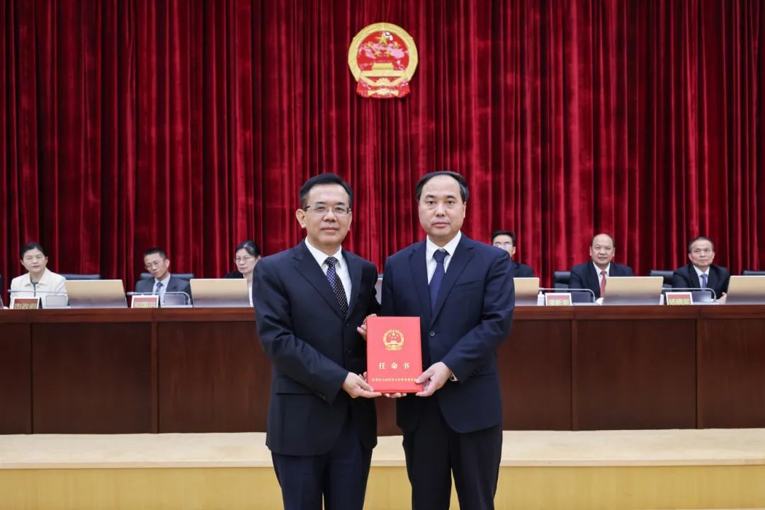 骆招群向新任命人员颁发任命书,并主持宪法宣誓仪式。