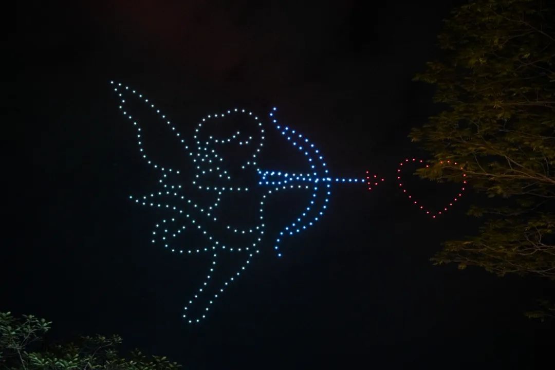 婚礼秀包含四大核心环节,上演传统与 科技 的极致碰撞,演绎婚尚新高度。无人机天幕首秀是国内首次将无人机编队应用于婚礼场景, 3 00架无人机在 国际会议中心 上空勾勒出“ 丘比特之箭 ”、“ 浪漫求婚 ”等动态图案;传统婚俗接亲仪式展现岭南文化下中式婚礼韵味;国际婚纱走秀, 多家 知名婚纱品牌联袂登场, 多 套国际高定婚纱惊艳亮相,模特诠释“无界美学”。